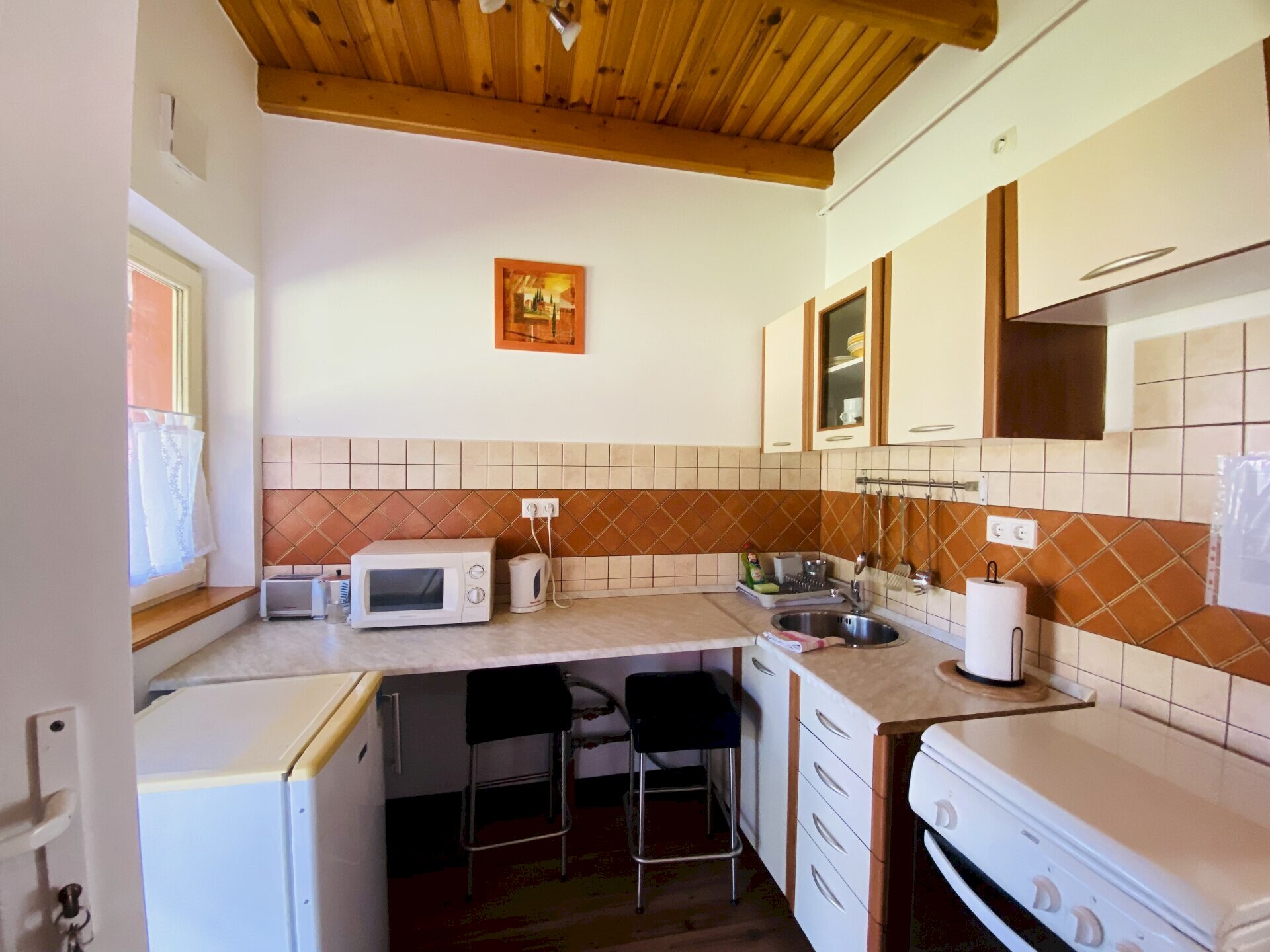 There are 5 apartments with separate entrances in the Borostyán Apartmanház. It is possible to accommodate a total of 10 people. All apartments are for 2 people, some can be equipped with an extra bed, and have a separate kitchen and bathroom.