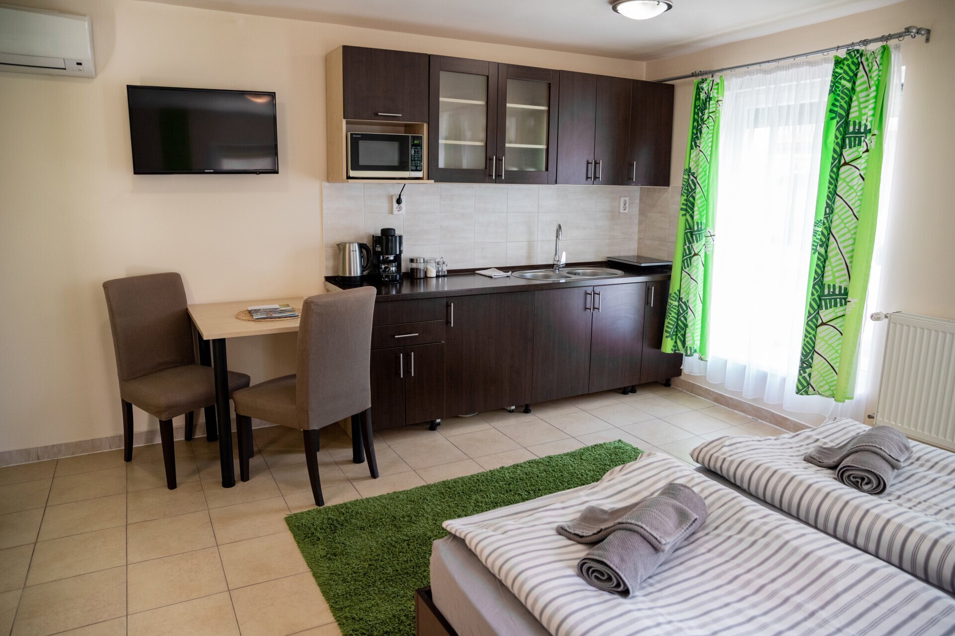 - private bathroom (shower) + toilet (with bathroom)Our 3 separate apartments are suitable for a total of 10 + 1 people. The apartments have free air conditioning, WIFI and a flat-screen TV. Accommodation is free for children up to 3 years old!
