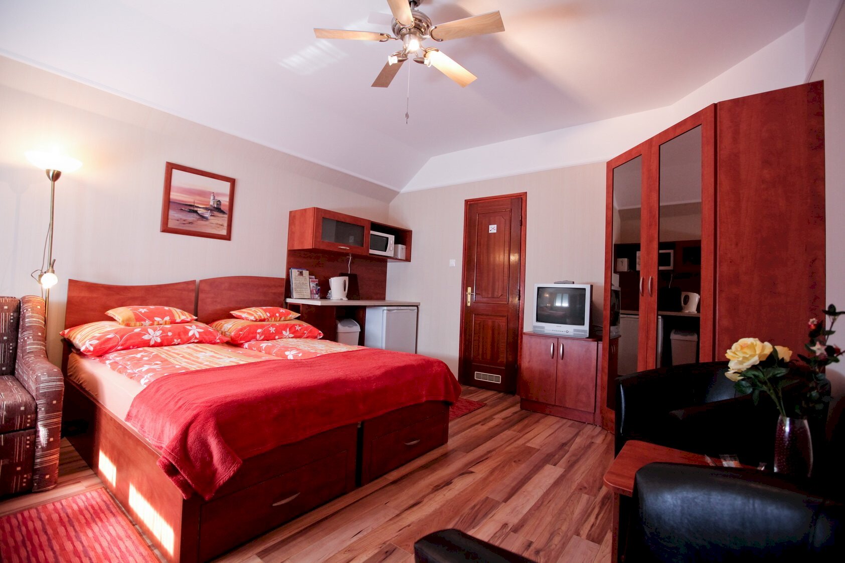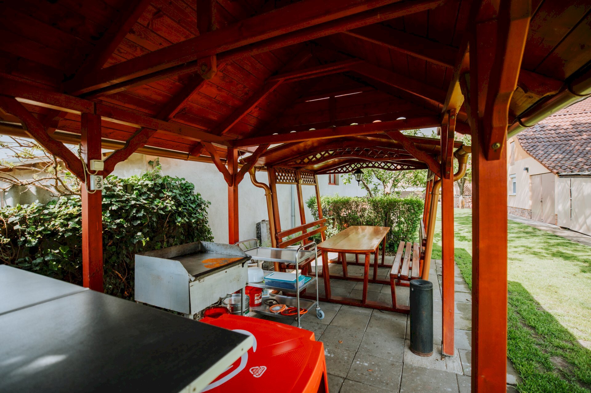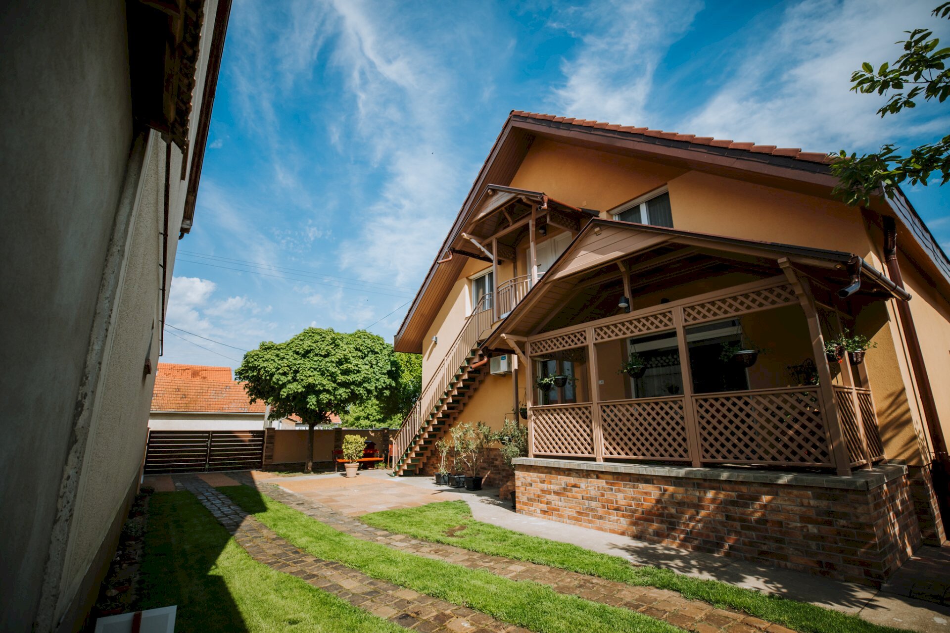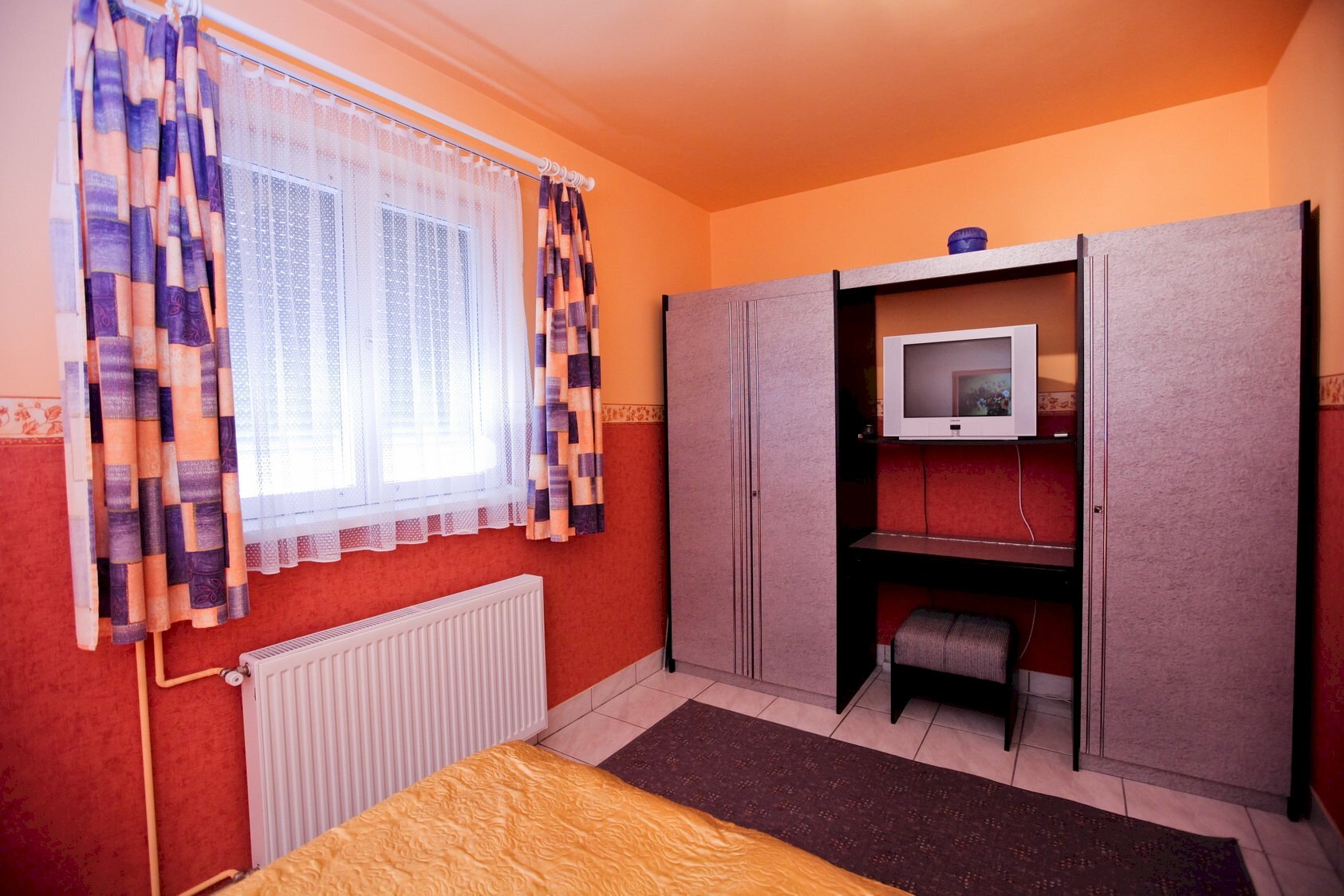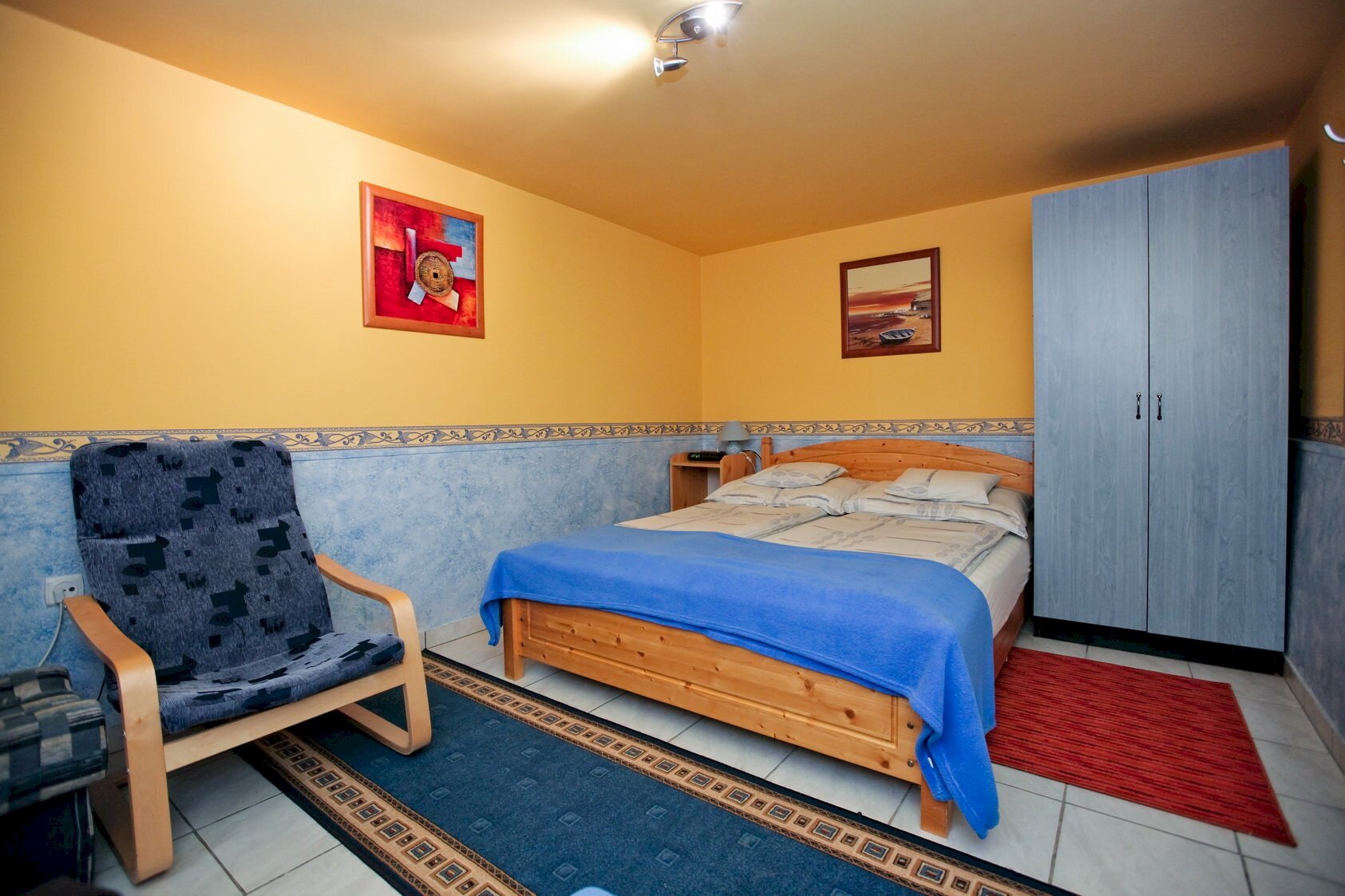 1 separate apartment, 2 upstairs guest rooms (with separate entrances) accommodate a total of 8 + 2 people. Our guest house has been completely renovated in 2021. Our apartments are equipped with new furniture, air conditioning, and a new exterior after the buildings have been completely insulated. Closed yard and parking. Garden with lounge and barbecue. Children's swings, swing beds, loungers.