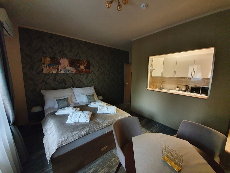 The kitchen is equipped with a microwave oven, toaster, kettle, fully equipped kitchen utensils, washing machine, refrigerator, steam and deodorizer. The rooms are equipped with cooling-heating air conditioning, smart TV, room safe, WIFI, as well as "welcome" room slippers. In the bathrooms, there are face towels, hand towels, medium and large towels, a bathrobe, a rain shower cabin, a hair dryer and a "welcome" cleaning package consisting of a shower gel, shampoo, body lotion and a shower cap.