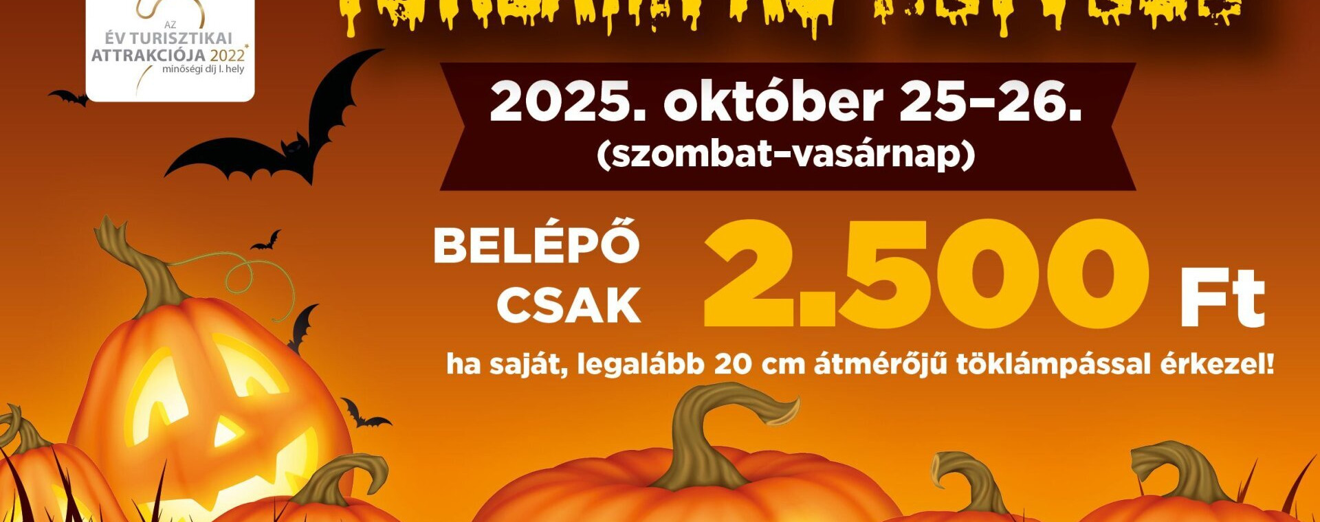 Belépő csak 2.500 Ft, ha saját, legalább 20 cm átmérőjű töklámpással érkezel!