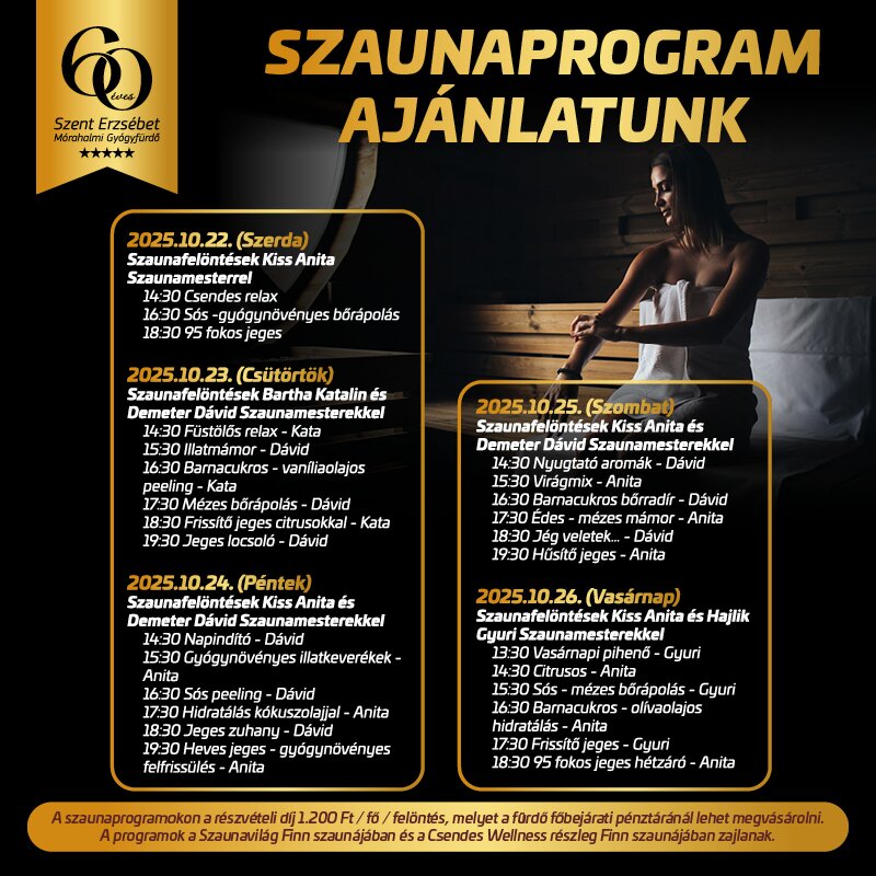 Heti szaunaprogram ajánlatunk