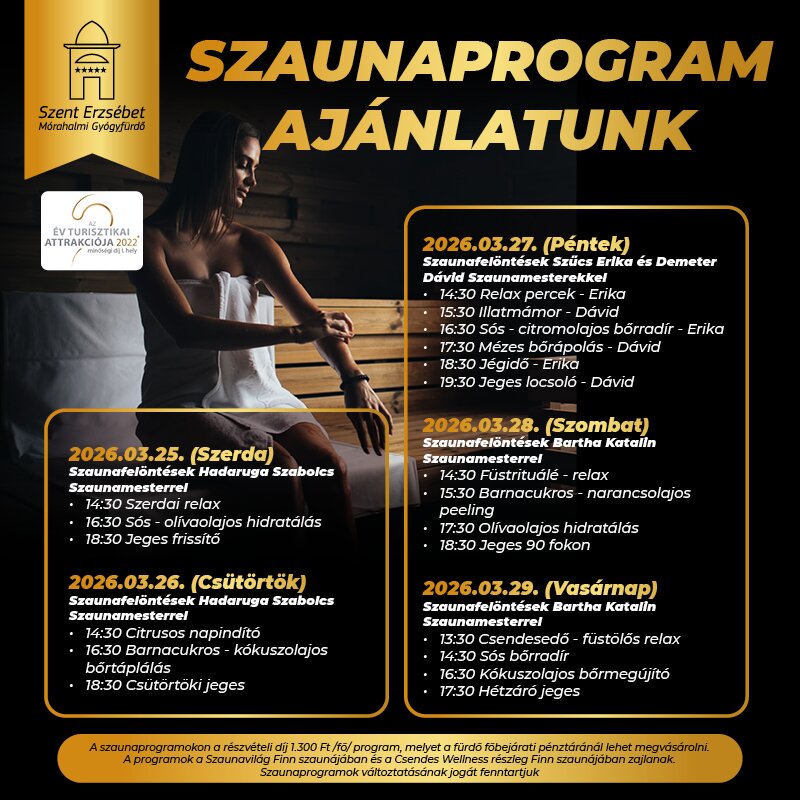 Heti szaunaprogram ajánlatunk