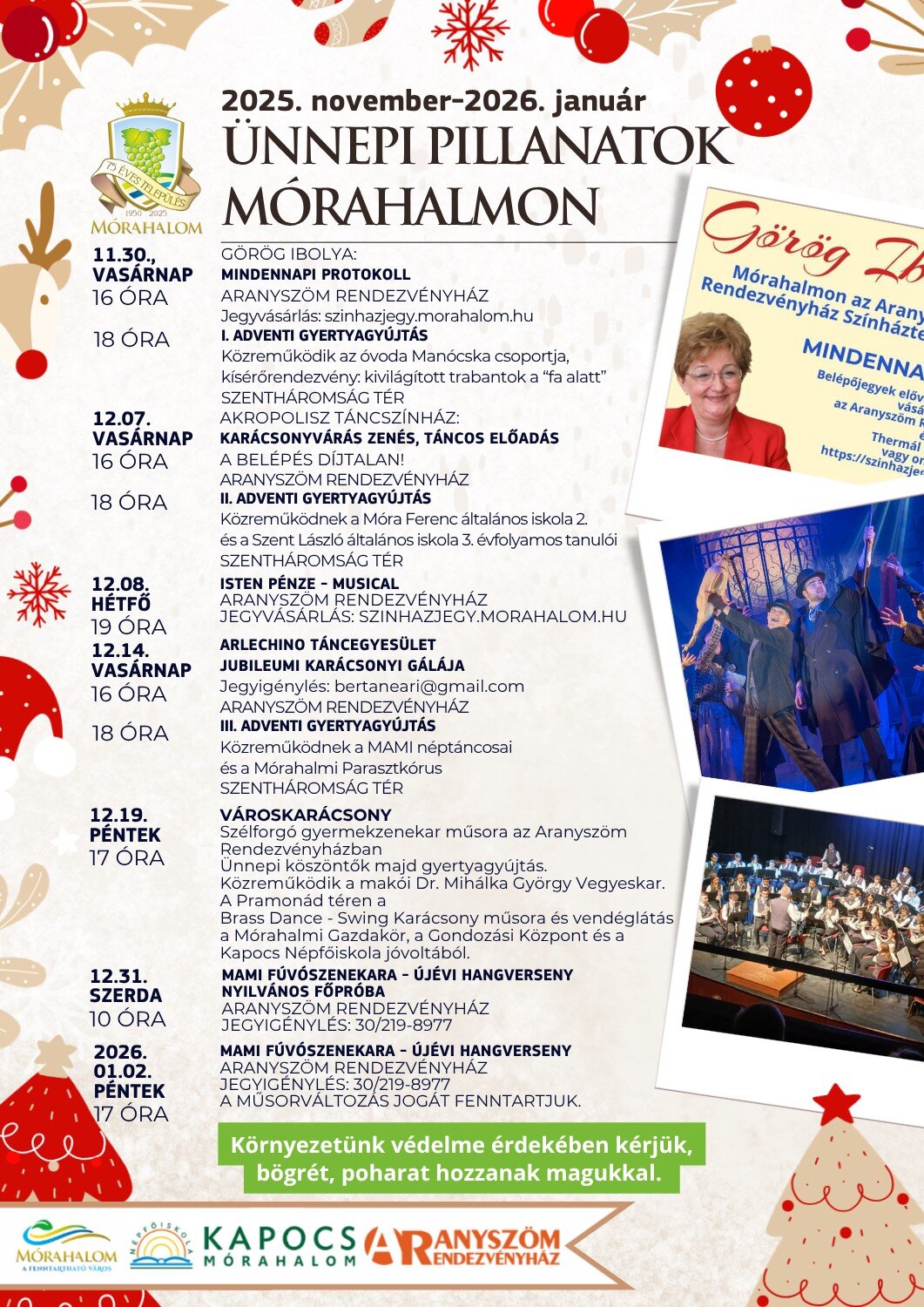 2025. novemberétől egészen 2026. januárjáig meghitt, zenés, táncos és szívhez szóló programokkal várjuk a város apraja-nagyját az adventi készülődés és a karácsonyi ünnepkör alkalmából.