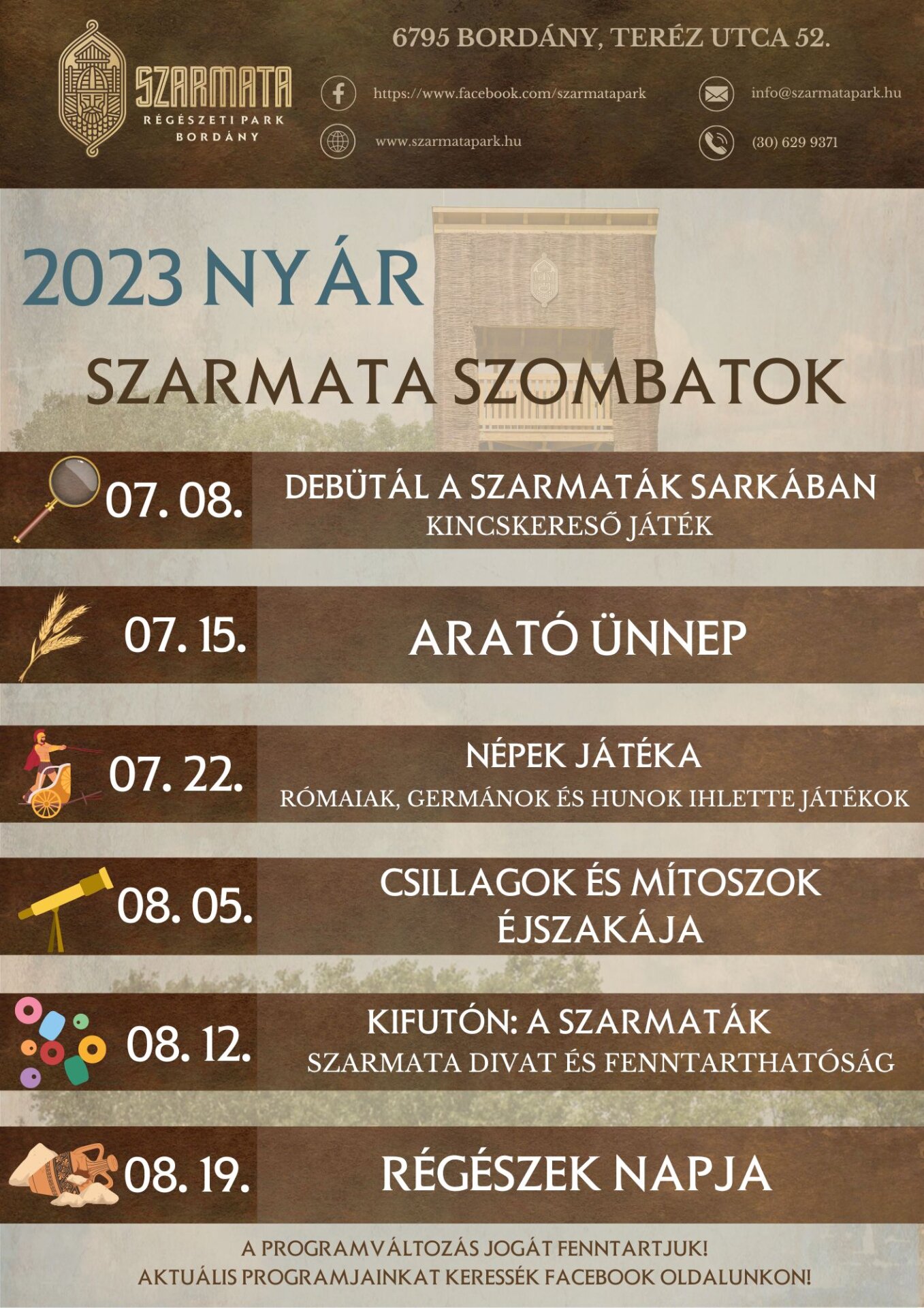 További programok a Szarmata Régészeti Parkban: