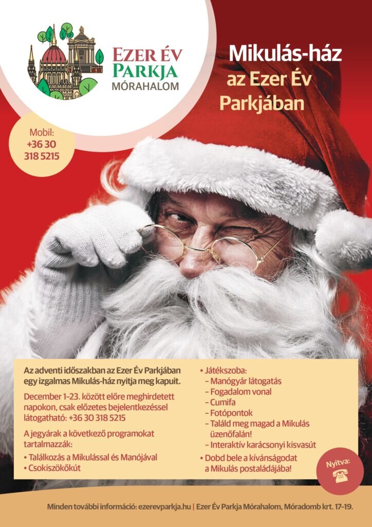 Mórahalom városa nagy újdonsággal rukkol elő, hiszen 2023. december 1-23. között az Ezer Év Parkjában megnyitja kapuit egy varázslatos helyszín, a Mikulás-ház.