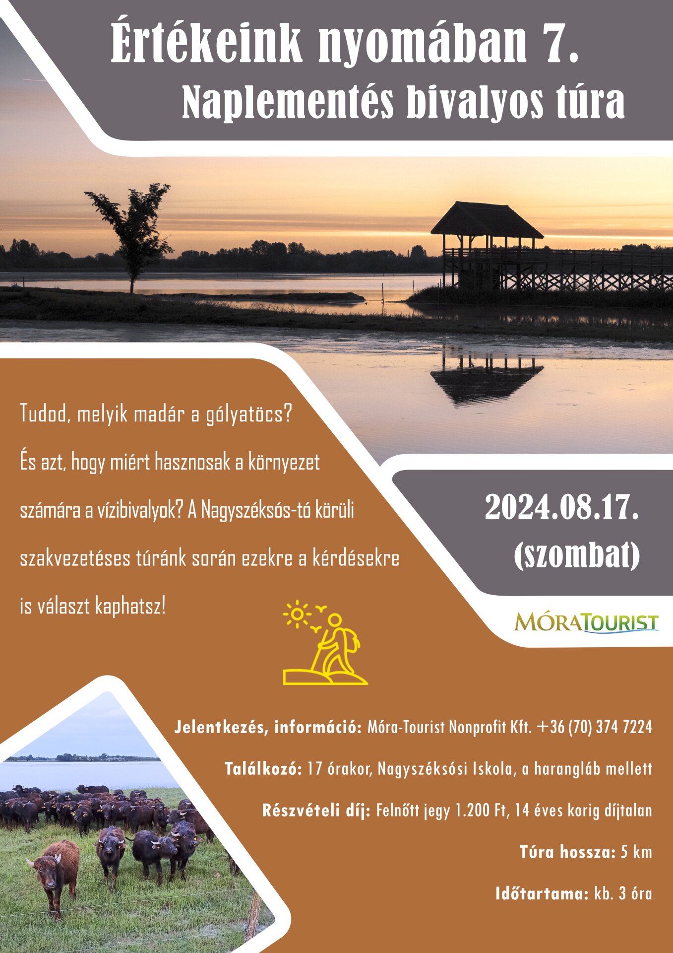 A Nagyszéksós-tó körüli szakvezetése túránk során megismerhetjük a Bivalyrezervátum lakóinak életet, a vízi madarak világát, a tó körül nyíló virágoknak és gyógynövényeket.