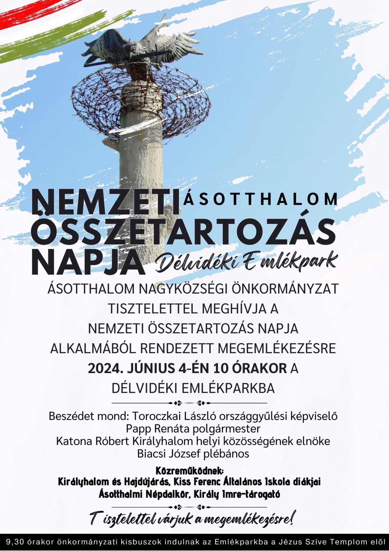 Az Ásotthalom Nagyközségi Önkormányzat tisztelettel meghívja - a Nemzeti Összetartozás Napja alkalmából rendezett megemlékezésre - 2024. június 4-én a Délvidéki Emlékparkba.