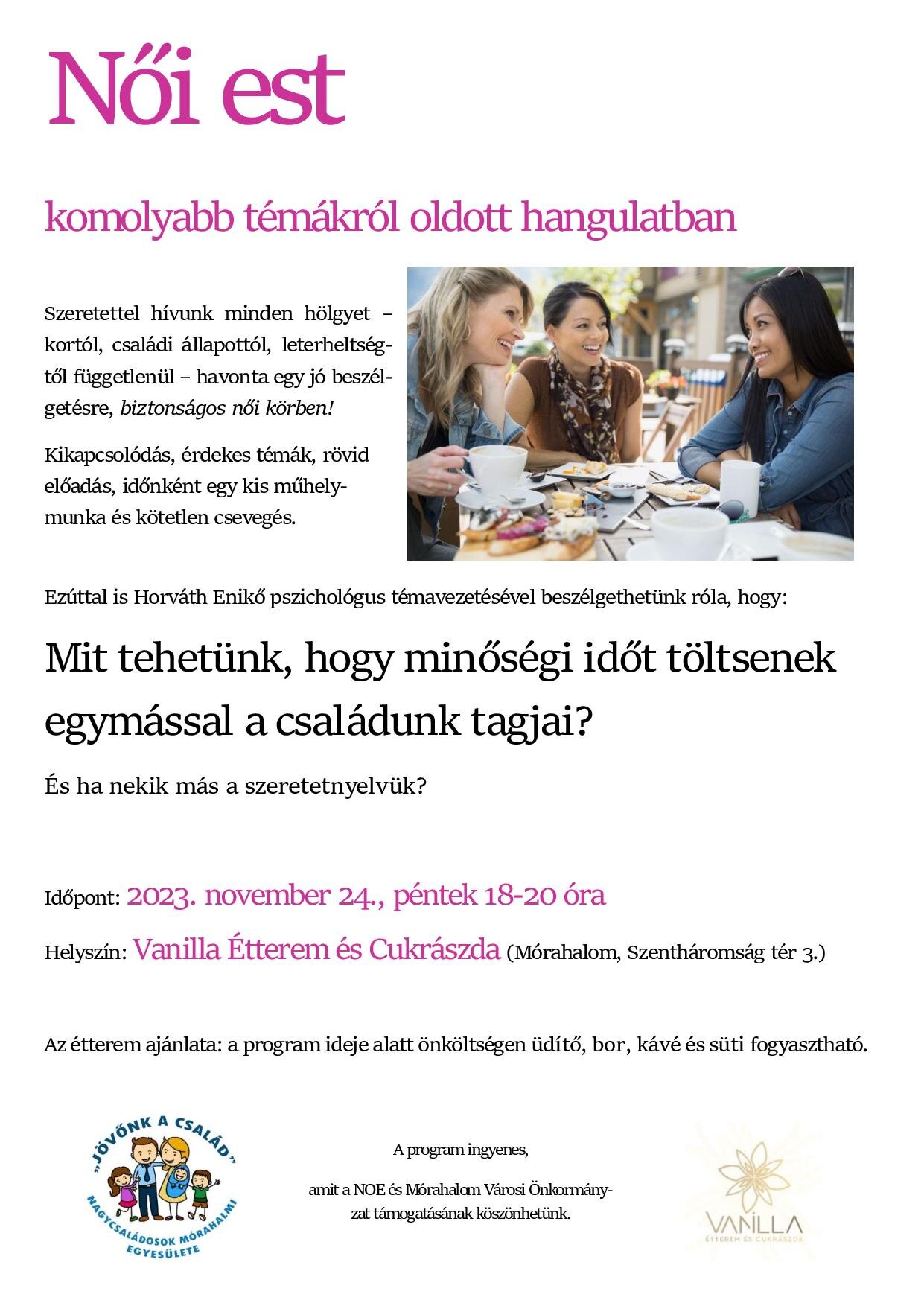 Szeretettel hívunk minden kedves hölgyet kortól, családi állapottól és leterheltségtől függetlenül, egy könnyed beszélgetésre, biztonságos női körben.