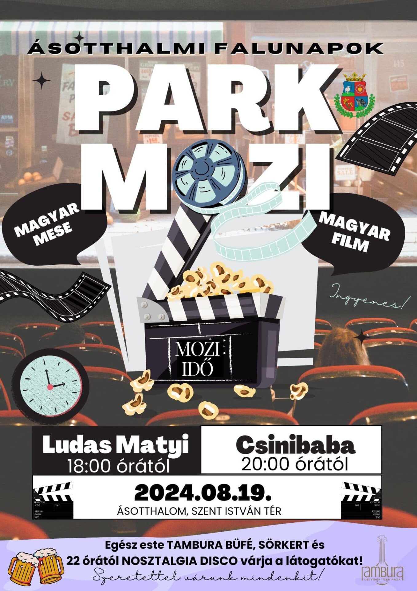 Az ÁSOTTHALMI FALUNAPOK harmadik napján, egy családi mozizásra várjuk szeretettel az érdeklődőket a Szent István téren a PARK MOZIBA.
