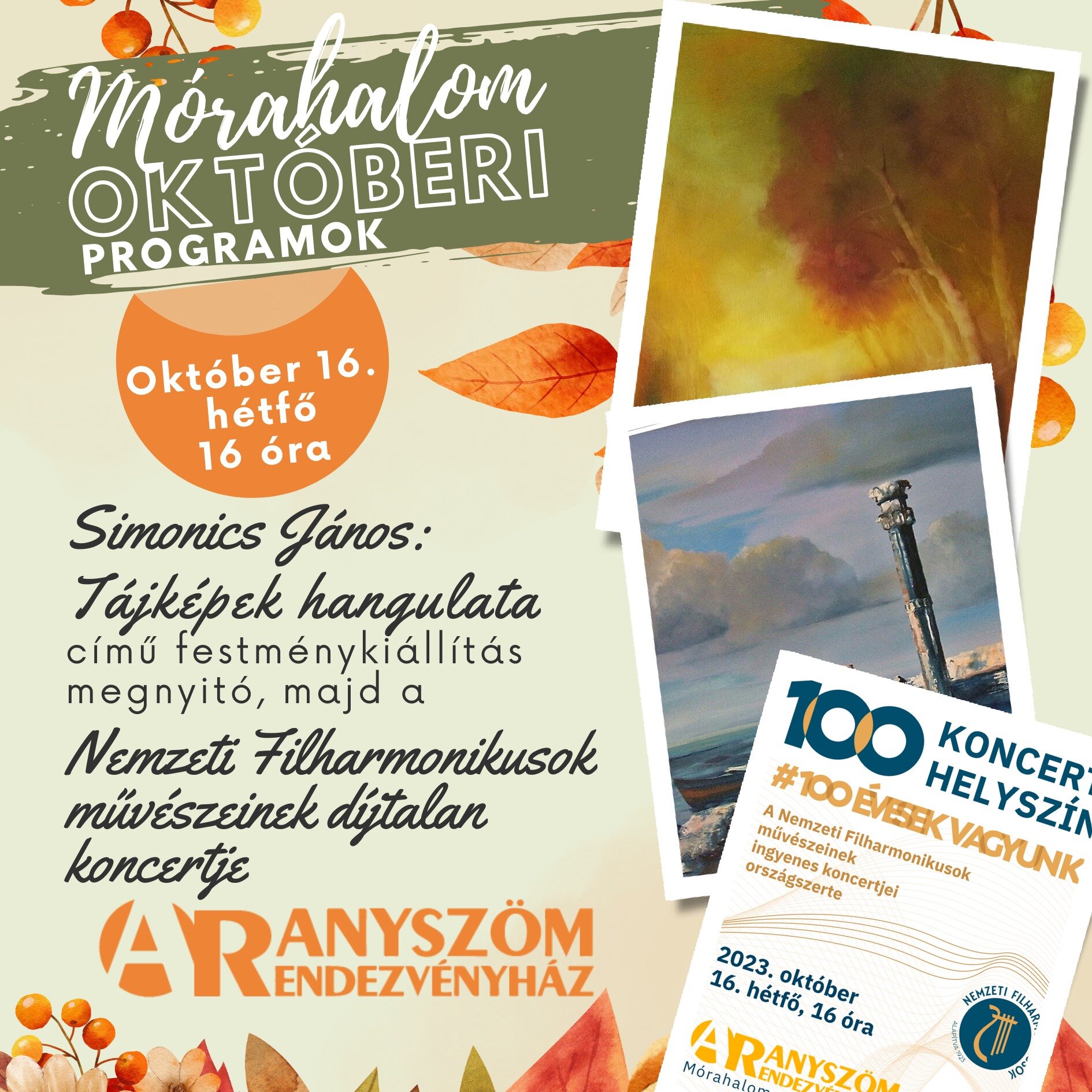 Simonics János: Tájképek hangulata című festménykiállítás megnyitó, majd a Nemzeti Filharmonikusok művészeinek DÍJTALAN koncertje.