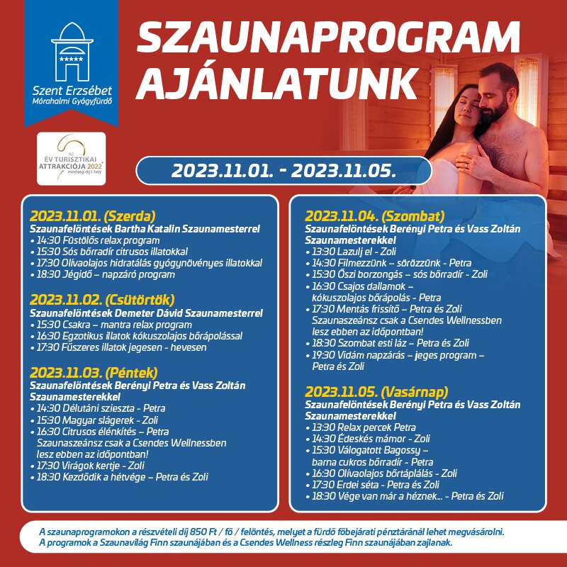 Kényeztető, testet-lelket átmelegítő szauna programok 5 napon át!