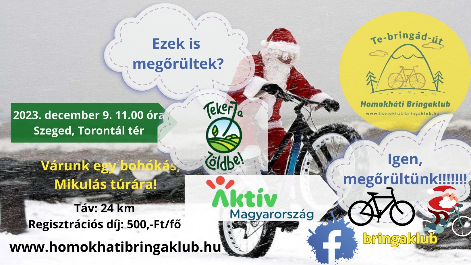 Amennyiben, nem félsz a rossz időtől és a hidegebb időjárástól, akkor várunk december 9-én Szegeden a Torontál téren, egy Mikulás körre!!