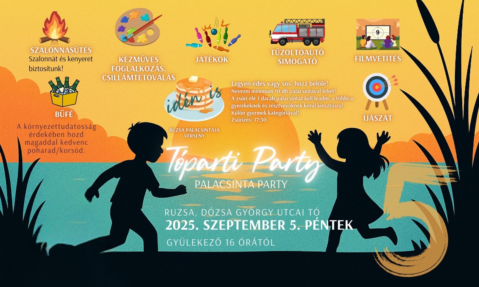 Szeptember 5-én Tóparti party Ruzsán –játékokkal, szalonnasütéssel, jó társasággal és igazi nyárbúcsúztató hangulattal!