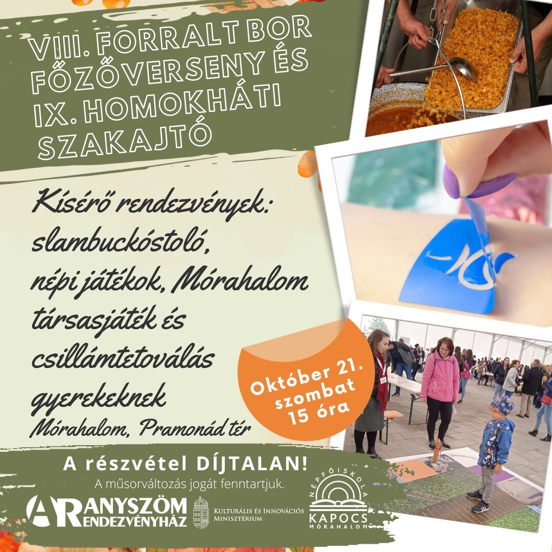 Kísérő rendezvények: slambuckóstoló, népi játékok gyerekeknek,Mórahalom társasjáték