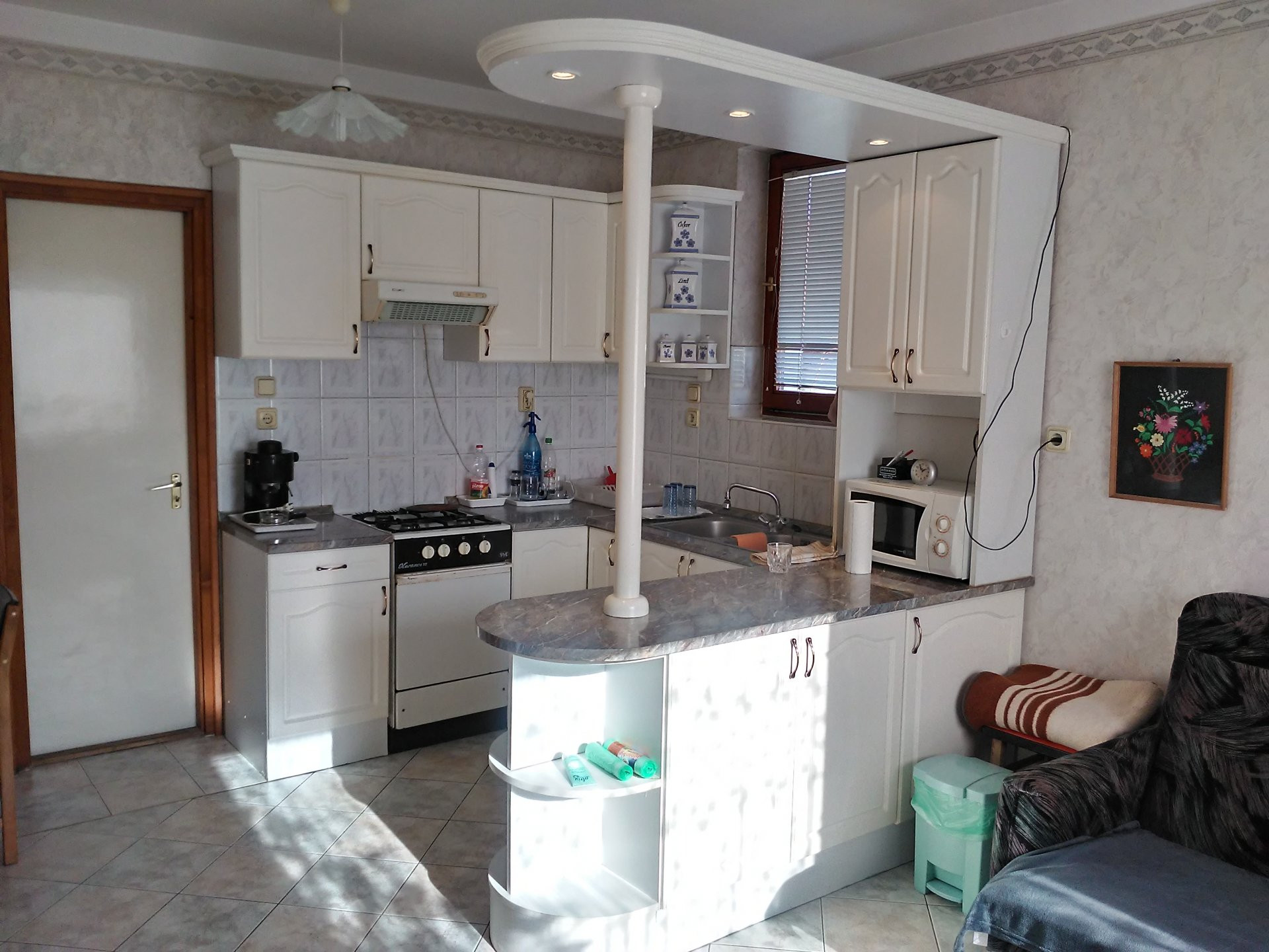 Az apartman 83 m² területű, benne két hálószoba, nagy nappali és étkező, jól felszerelt konyha /gáztűzhellyel, mikrohullámú sütővel, nagy méretű hűtőszekrénnyel/. A fürdőszobában fürdőkád és tusoló is rendelkezésre áll. A füvesített kert 350 négyzetméter. Bográcsozás, grillezés és a gyerekeknek homokozó biztosított.