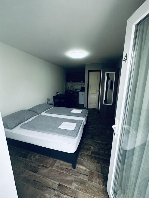 A gyógyfürdő nyári bejárata mindössze 500 méterre található az apartmantól, így könnyen, gyalogosan megközelíthető. Egy hálóteres apartmanjaink 2-3 fő befogadására alkalmasak, melyhez felszerelt konyha, hálószoba, fürdőszoba, TV és ingyenes WIFI tartozik.