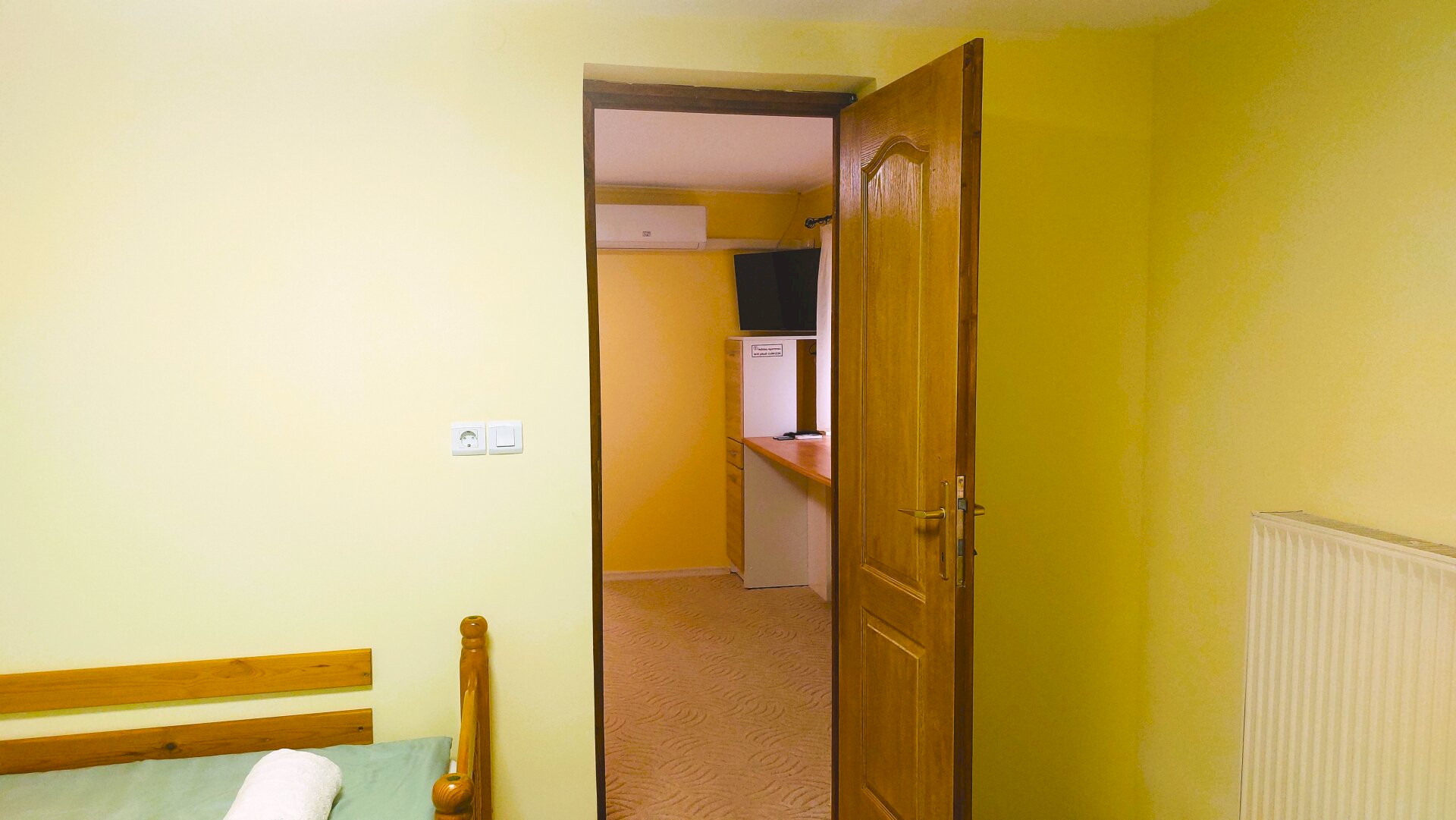 A földszintes apartmanban 6+2 fős két hálószoba, nappali, felszerelt konyha és két fürdőszoba található. A nagyobb hálószobában egy nagy franciaágy és két egyszemélyes ágy van, a második kisebb hálószobában két egyszemélyes ágy, a nappaliban egy kétszemélyes kihúzható kanapé található. A lakóegység az utcára nyílik, udvara nincs, de előtte parkolóhelyek vannak. A szobákban síkképernyős tv, Wifi van, a konyha teljesen felszerelt (kávéfőző, főzőlap, vízforraló, edények, kombinált hűtőszekrény fagyasztóval stb.). A közelben élelmiszerbolt (Coop abc), Rossmann, Pepco, pékség, fagyizó, pizzéria, étterem stb. található.