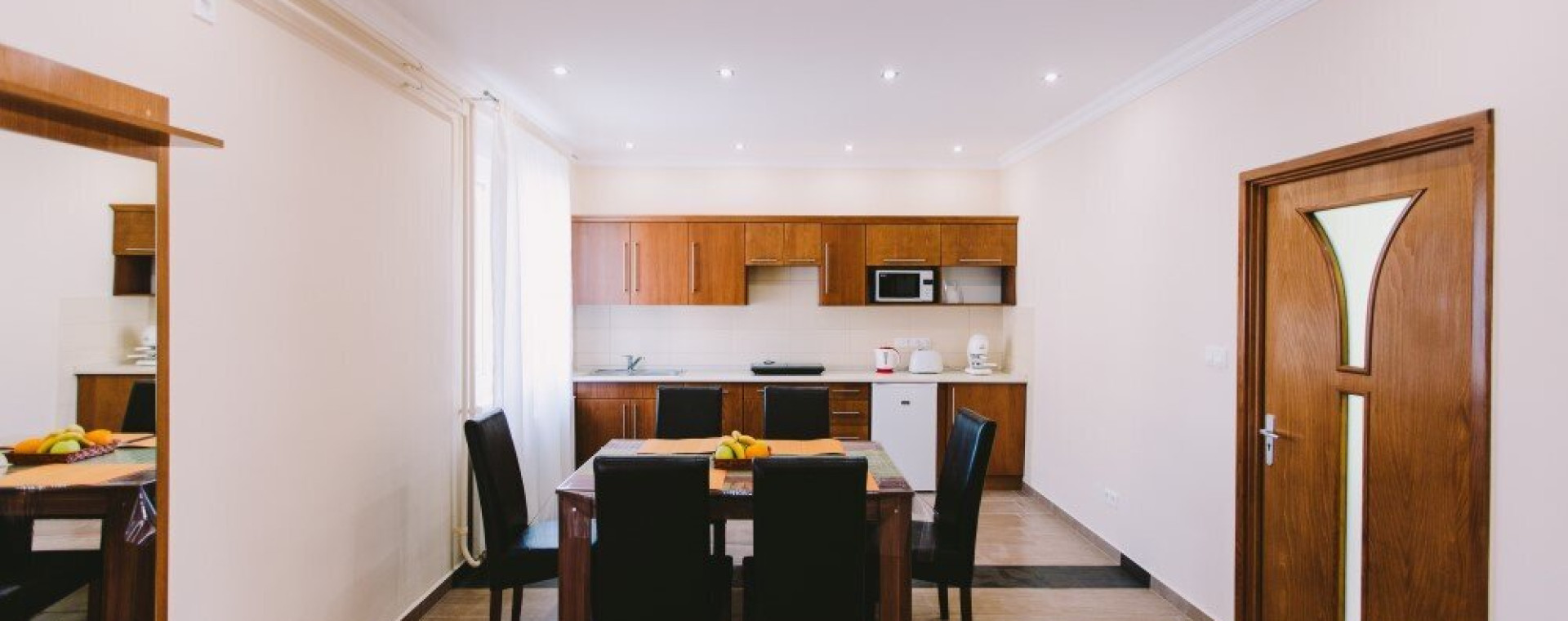 Egy franciaágyas szoba konyharésszel közös hálótérben, saját (zuhanyfülkés) fürdőszobával. Az apartman nem pótágyazható, a konyha jól felszerelt.