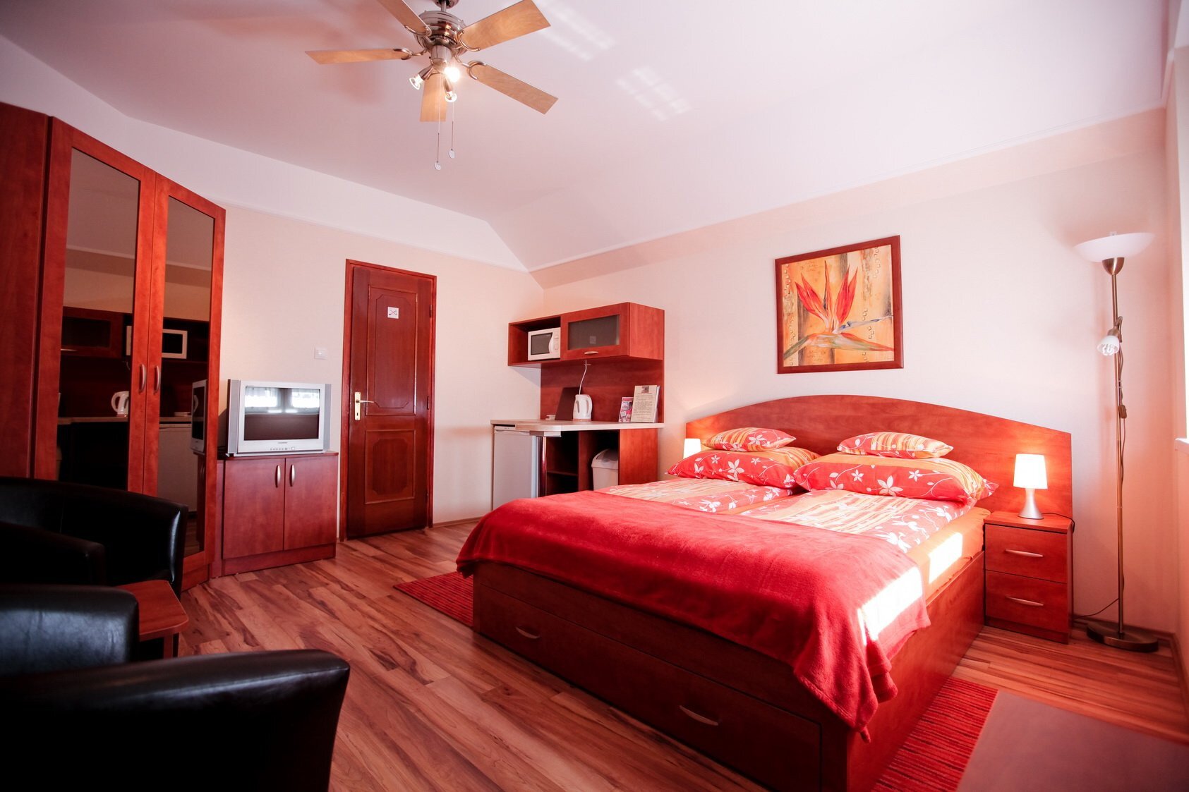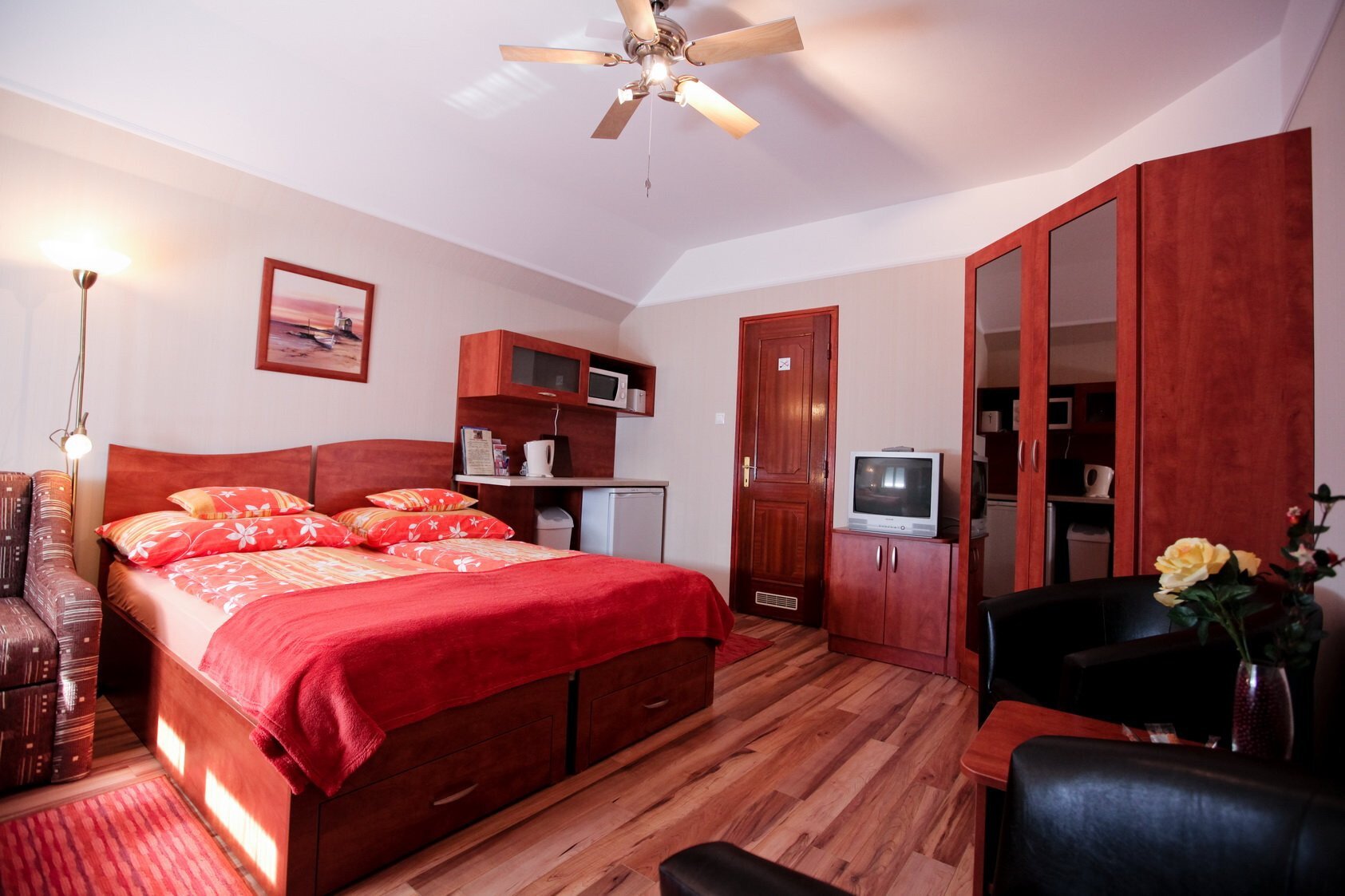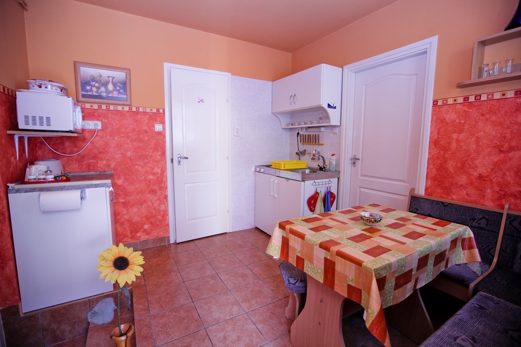 1 db önálló apartman, 2 db emeleti vendégszoba (külön bejárattal). Összesen 8+2 fő befogadására alkalmas.