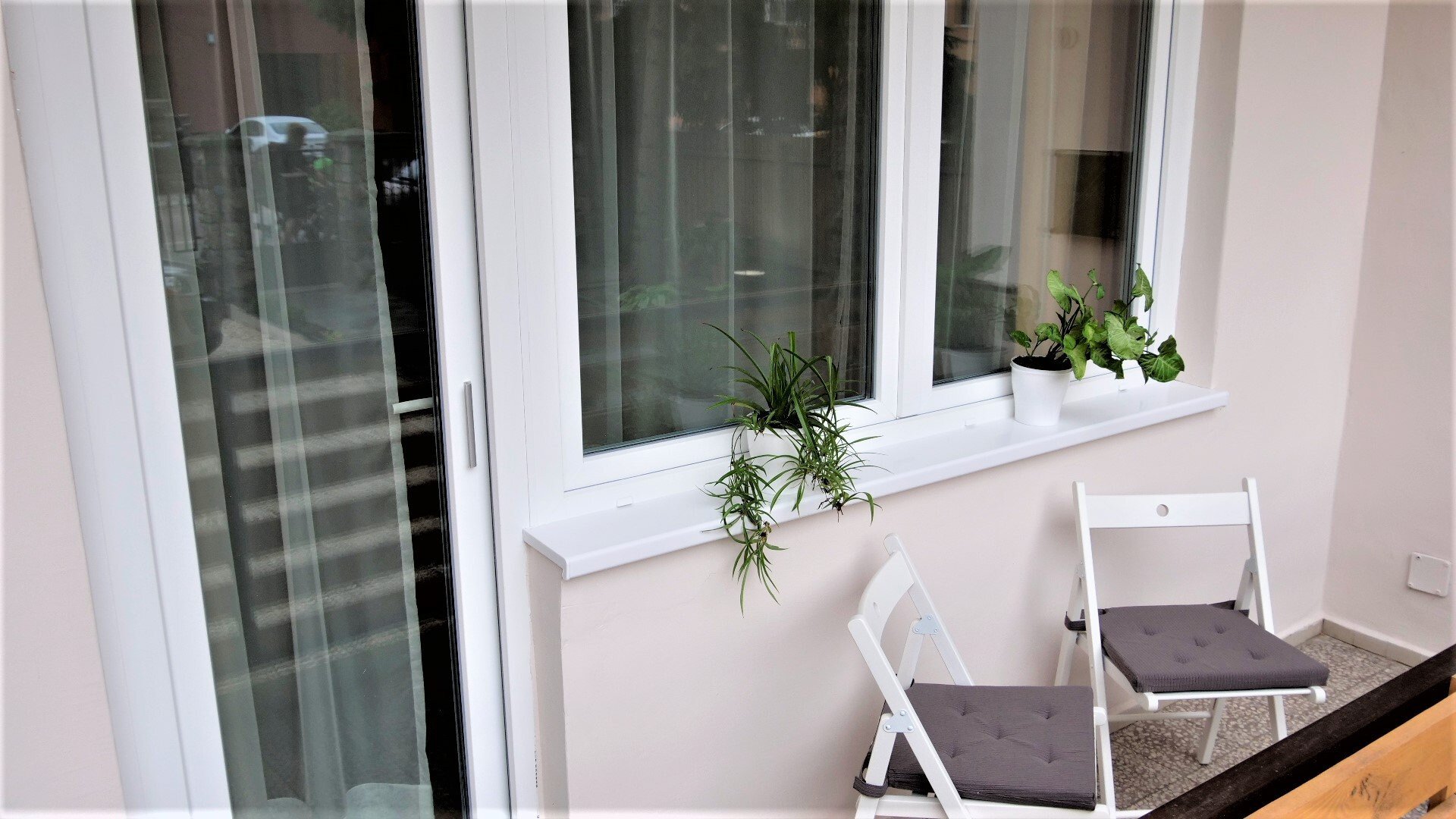 Központi elhelyezkedésű, ám az épület mögötti hangulatos udvarrészben mégis Önre talál a vidéki romantika: