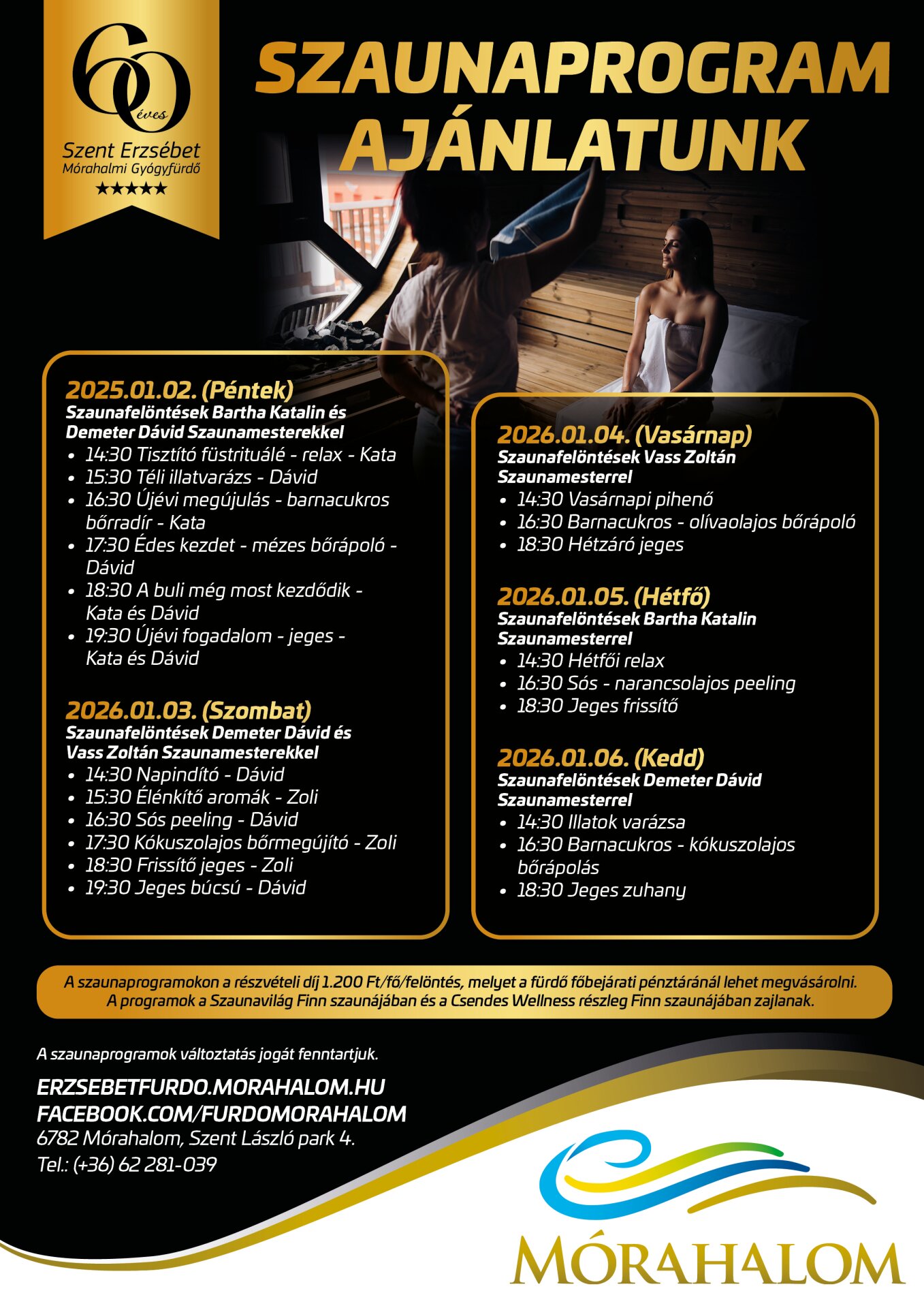- Tájékoztatjuk Önöket, hogy 3 fő alatt NEM TARTUNK SZAUNASZEÁNSZOT egyik részlegen sem!